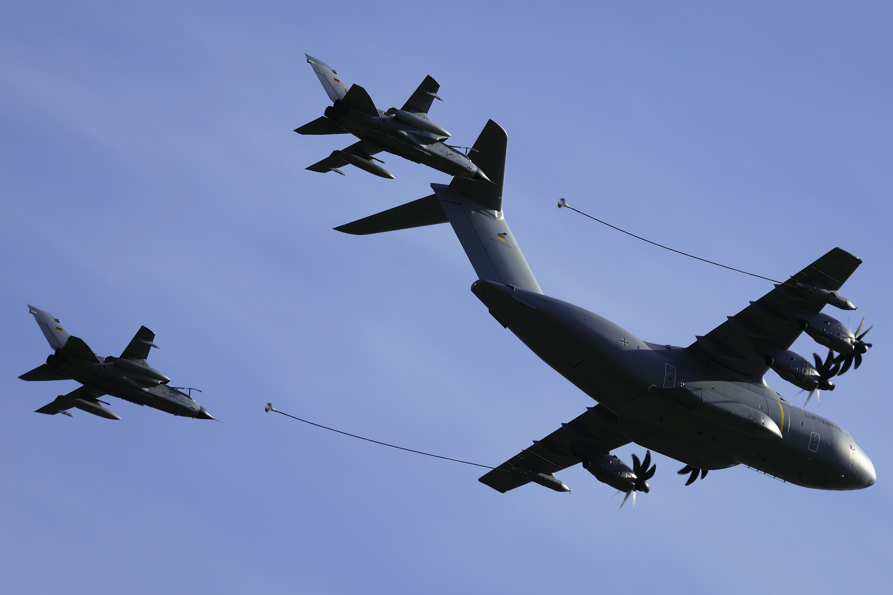 Die 54+11 A400M LTG-62 , 45+00 Tornado IDS TLG-33 & 45+09 Tornado IDS TLG-33 in der Luftparade der Bundeswehr bei der ILA 2018 in Berlin.