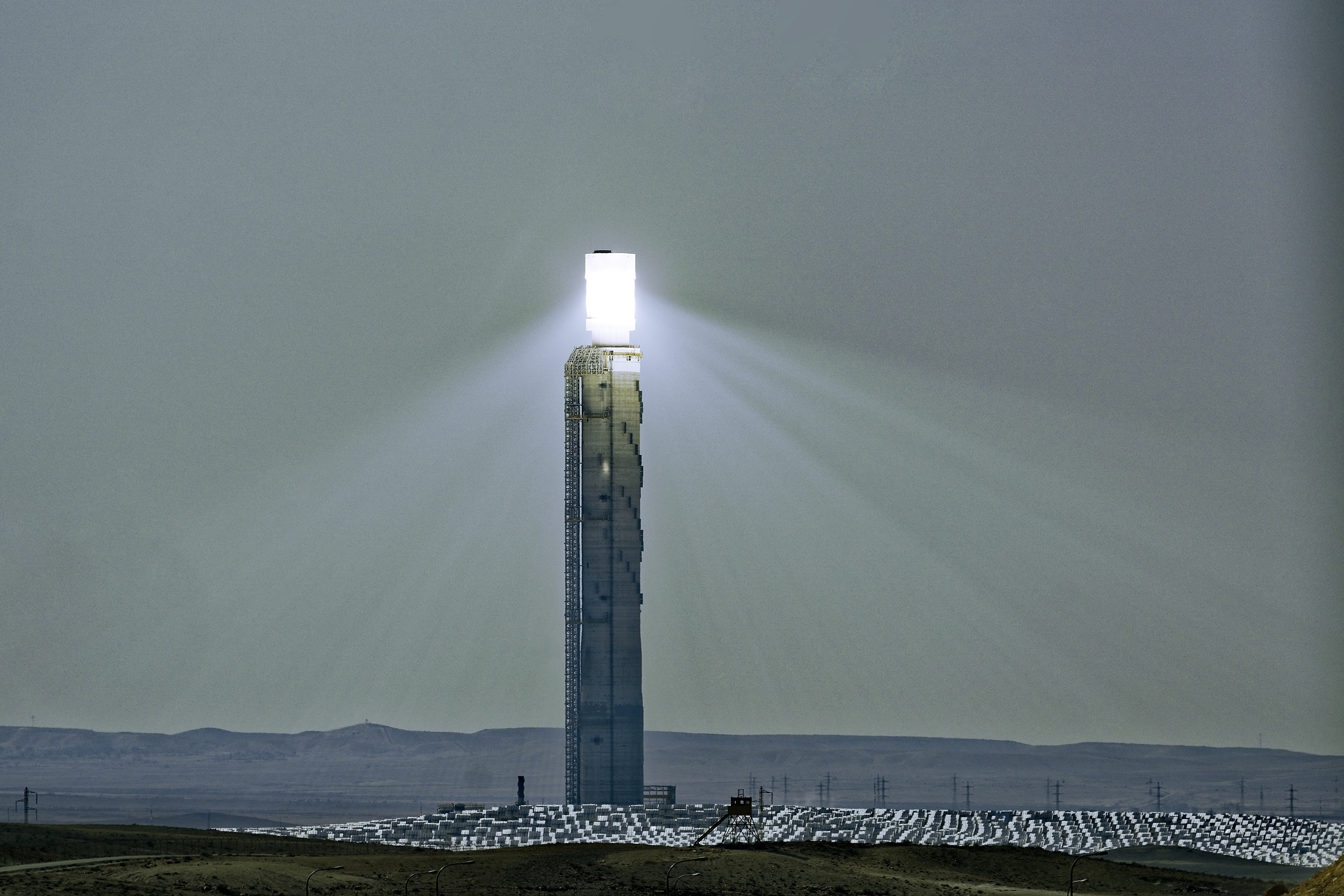 Das Sonnenlicht wird in diesem Solarkraftwerk nahe dem Kibbuz Aschalim in der Negev Wüste zur Stromerzeugung genutzt. Die Israelis planen die Umweltschädlichen Kohlekraftwerke durch Sonnenenergie und Erdgas zu ersetzen. Dieses solarthermische Kraftwerk kann sogar Energie speichern, so das weiter Strom ins Netz eingespeist wird wenn schon die Sonne unter gegangen ist. ( Leider nur ein Schnappschuss aus einen fahrenden Fahrzeug ) Tags.: Bauwerke, Wüste, Negev, Aschalim, Kraftwerk, Licht