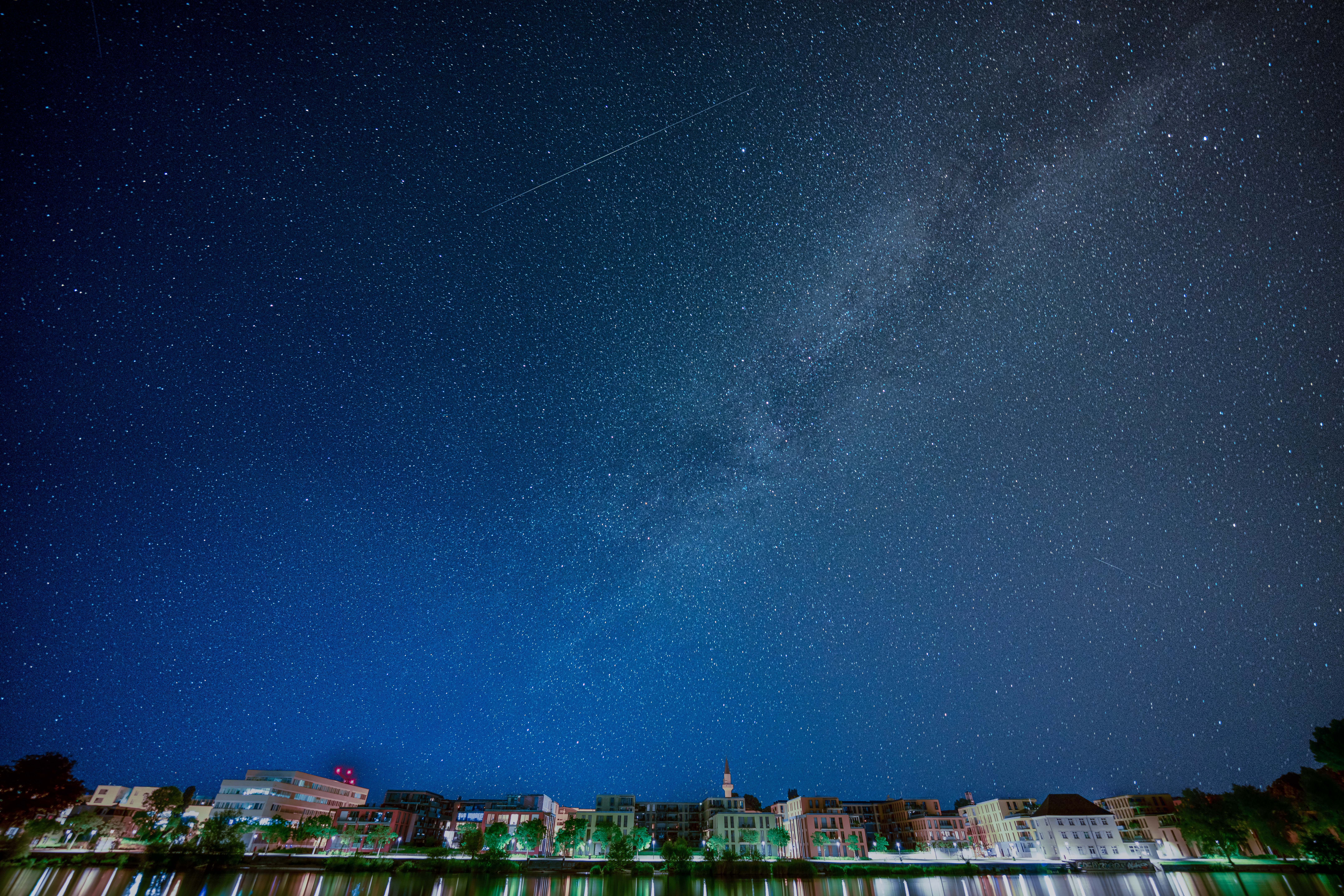 Seerhein mit Uferpromenade Stadtteil Petershausen-West Konstanz in der letzten Mainacht, genau in Richtung Nord.