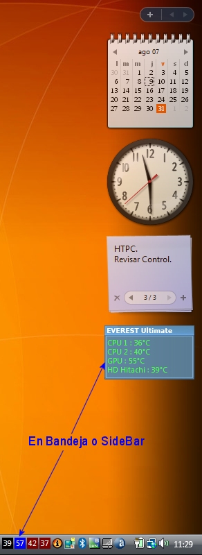 Si quieres tener "a mano", la monitorización de la temperatura, el Everest te proporciona 2 formas de verlo constantemente, en Bandeja, ó en el SideBar (Vista).
