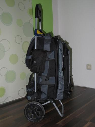 - Irgendwie Räder zu dem vorhandenem Rucksack montieren